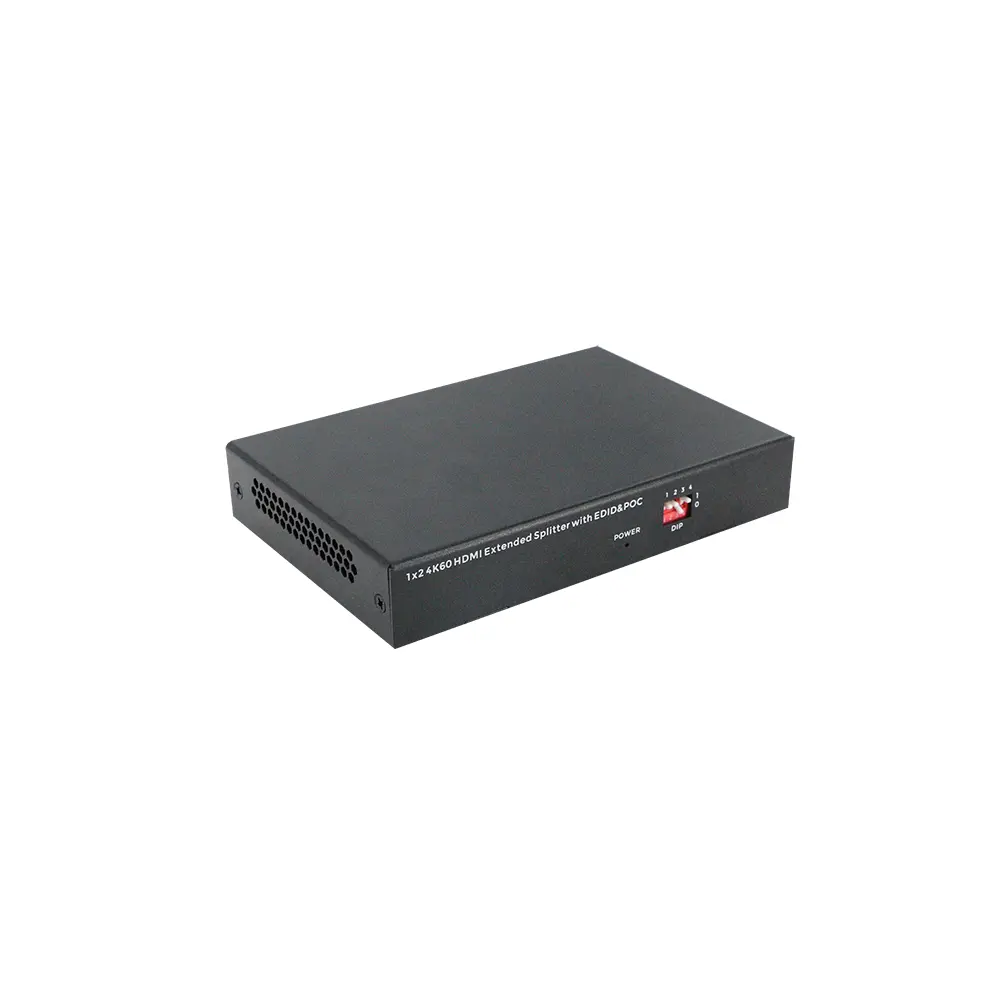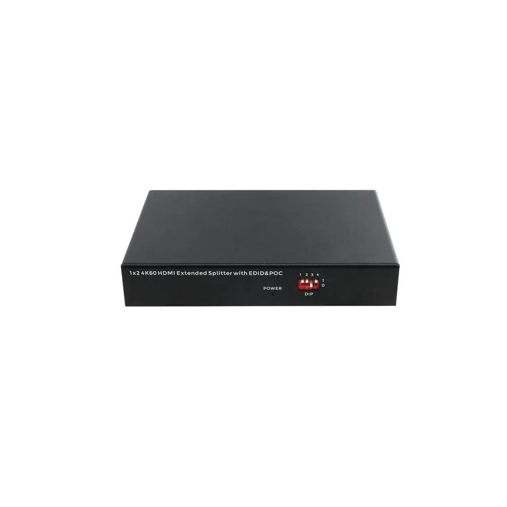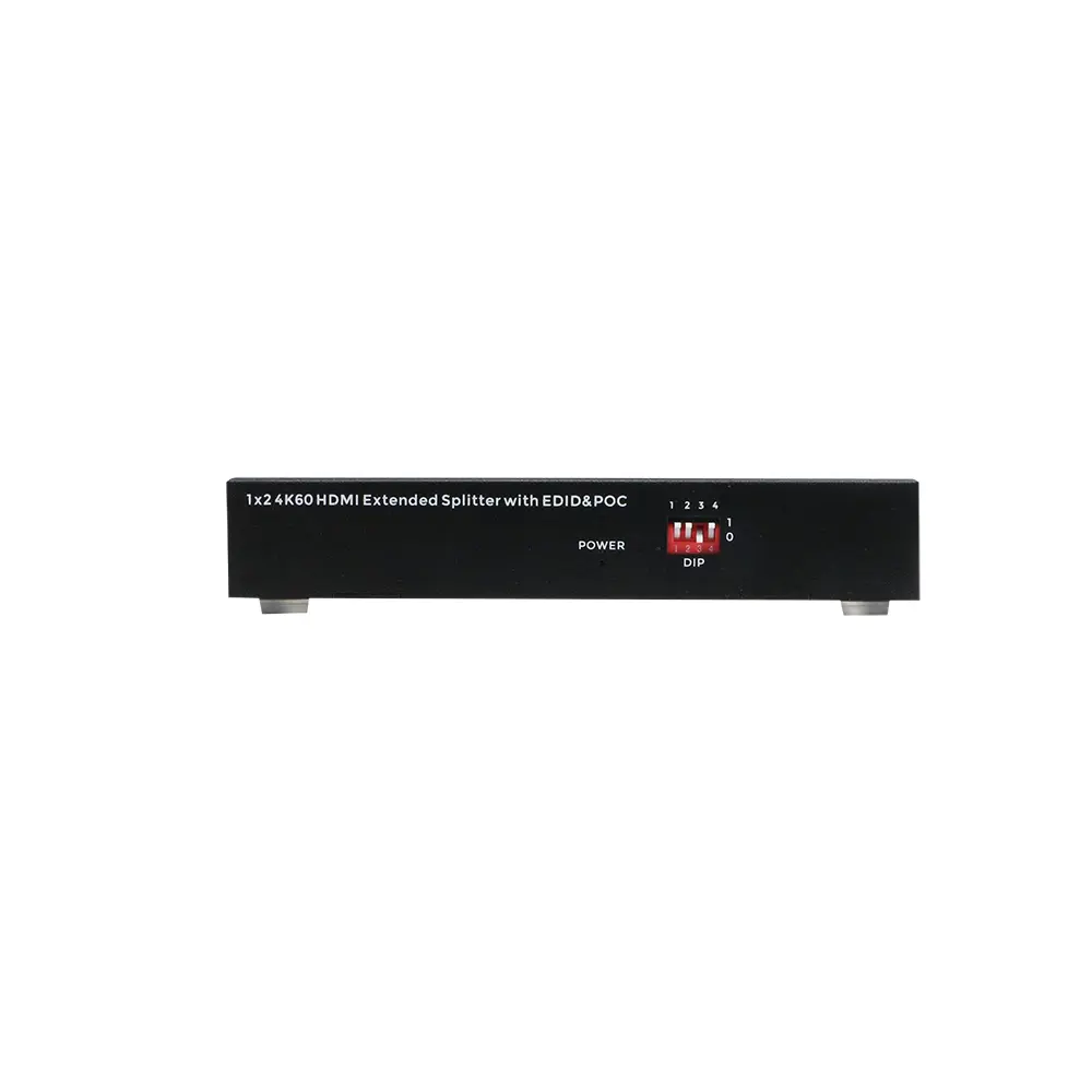 This high performance 18Gbps 1×2 HDMI2.0 extended Splitter, it can support 1 HDMI input with HDMI loop out and to 2 CAT6 outputs. The resolution is up to 4K60Hz. It supports EDID management, auto scaling function to fix different display resolutions, also with one 3.5mm audio de-embedded function, IR-RX transmission to the Receivers with POC function. The receiver with dual HDMI outputs and IR-TX out. The ON/OFF power switch provides conveniences for users to turn it ON/OFF without the power cable plugging and unplugging.
