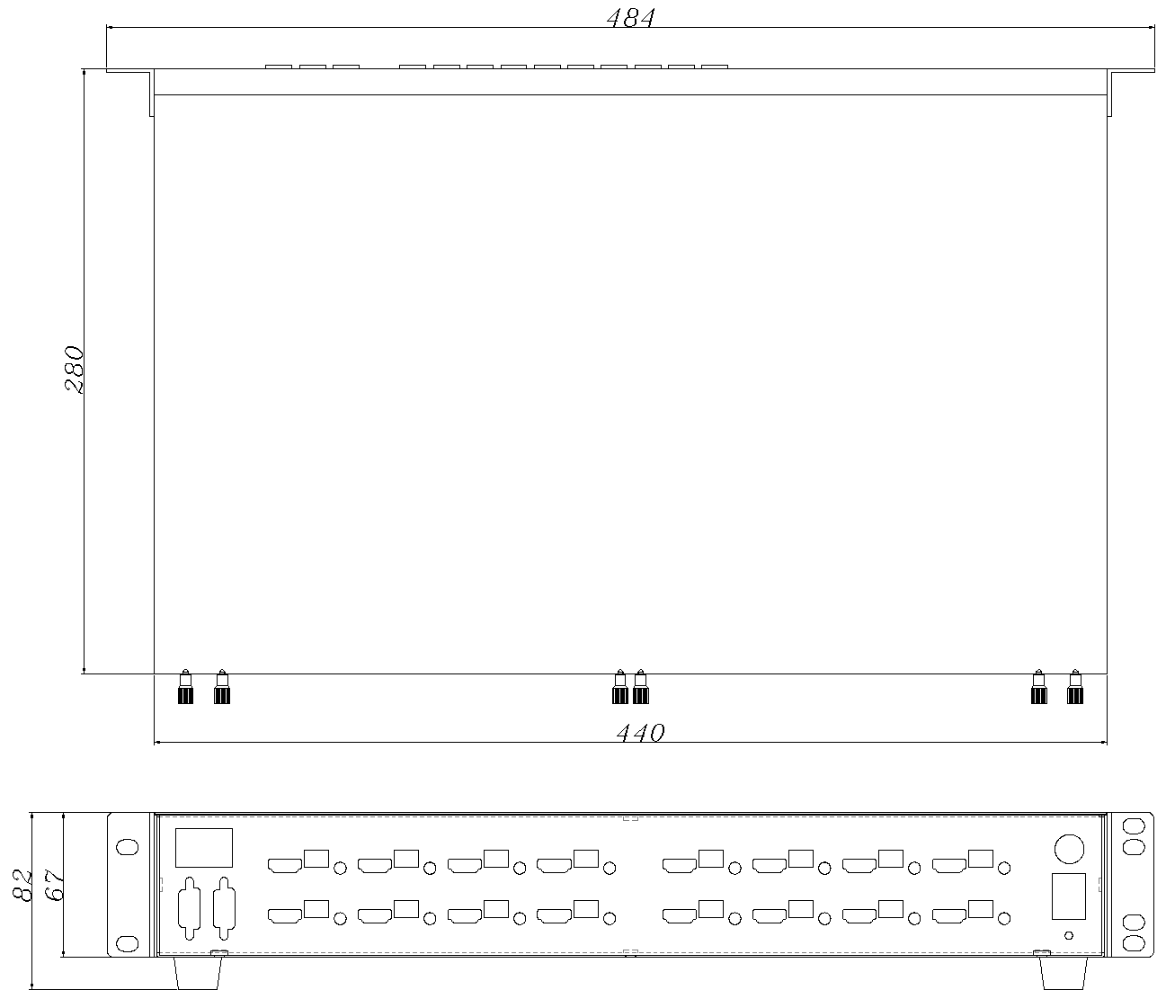 Matrix Size Drawing(484*67*280)mm(L*H*D)