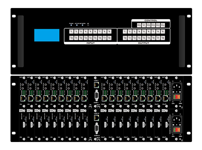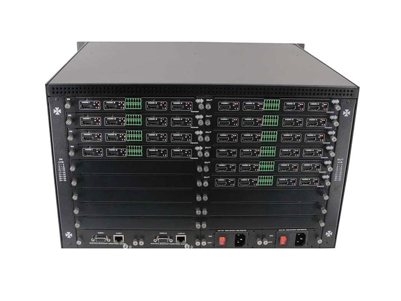 As a powerful device, the 4K HDMI Modular Matrix Switcher can perfectly solve various signal switching needs in multimedia conference rooms. Whether it is the switching of different signal sources, the connection of multiple displays, the transmission of high-definition signals or remote control, etc., the high-definition modular matrix can provide a one-stop solution, bringing convenience and efficiency to signal switching in multimedia conference rooms. First of all, the 4K HDMI Modular Matrix Switcher can meet the switching needs of a variety of different signal sources. In a multimedia conference room, various types of signal sources may be involved, such as computers, projectors, DVD players, cameras, etc. These signal sources often have different interface types, such as HDMI, VGA, DVI, etc. The high-definition mixing matrix has inputs and outputs with