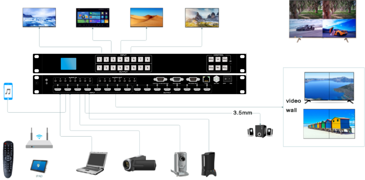 | 入力ポート | 8*3.5mm の 8*HDMI2.0 |