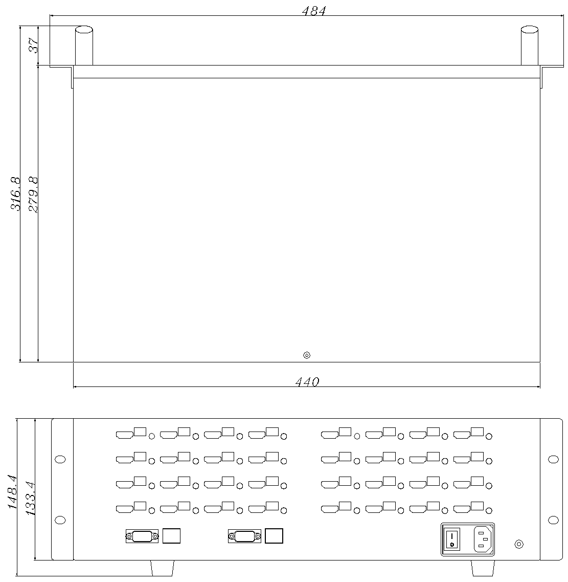 Matrix Size Drawing(484*133*280)mm(L*H*D)