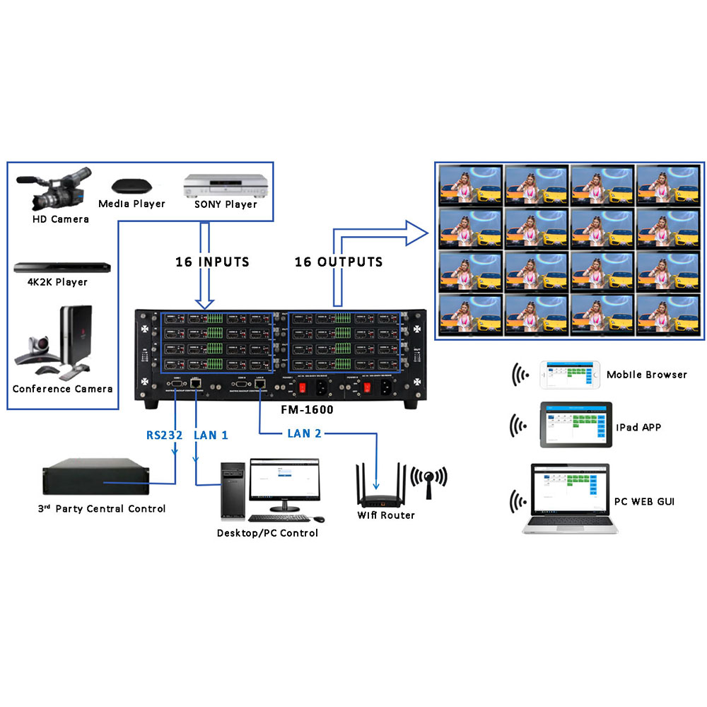 16×16 Modular Matrix Switcher with iPad APP control