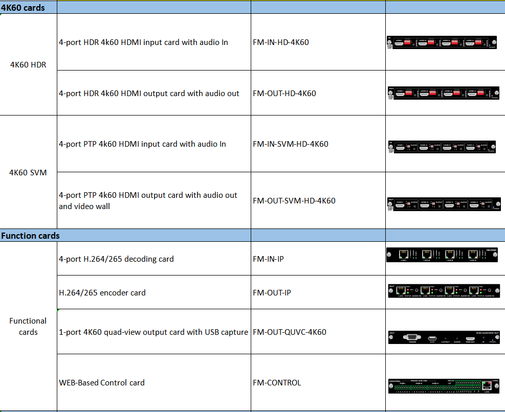 • Support Video wall and seamless switching with the 1080P and 4K60 cards