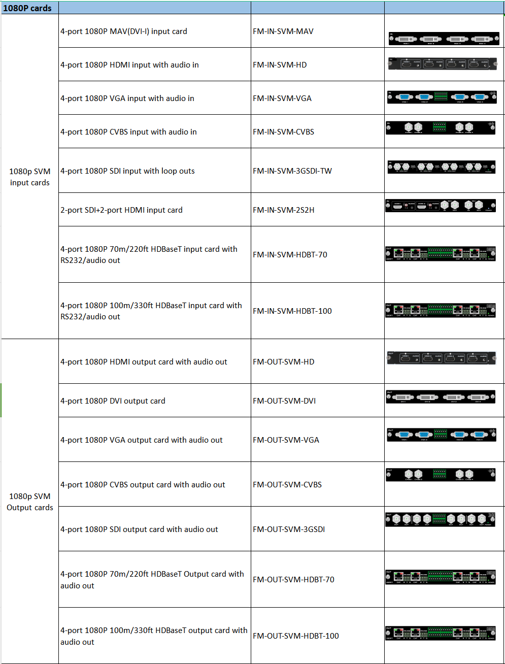 • Supports DVI-I/ HDMI/ 3GSDI/ HD Base T/ Fiber