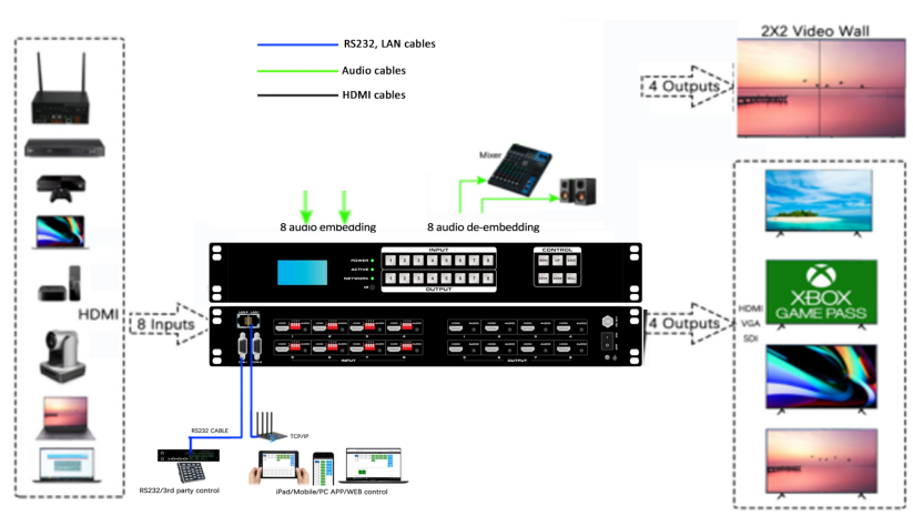 | Input | 4* HDMI, 4* 3.5mm audio | 8* HDMI, 8* 3.5mm audio | 16* HDMI, 16* 3.5mm audio |