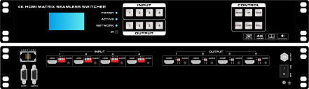 This is a new 4K60 FIX SVM series matrix switcher with the seamless switch, Video Wall function, EDID management, audio embedded&de-embedded, scaling function and all ports are HDCP compliant. With the friendly user control methods by IR remote, 2-Key push buttons with background blue light, WEB GUI/TCPIP/RS232/APP control, supports EDID management, this matrix switcher can work with the Blu-Ray Players, Set-Top boxes, Home Theater, and game consoles etc HDMI input sources to route to the HDMI displays, it has been widely used in different audio visual applications.