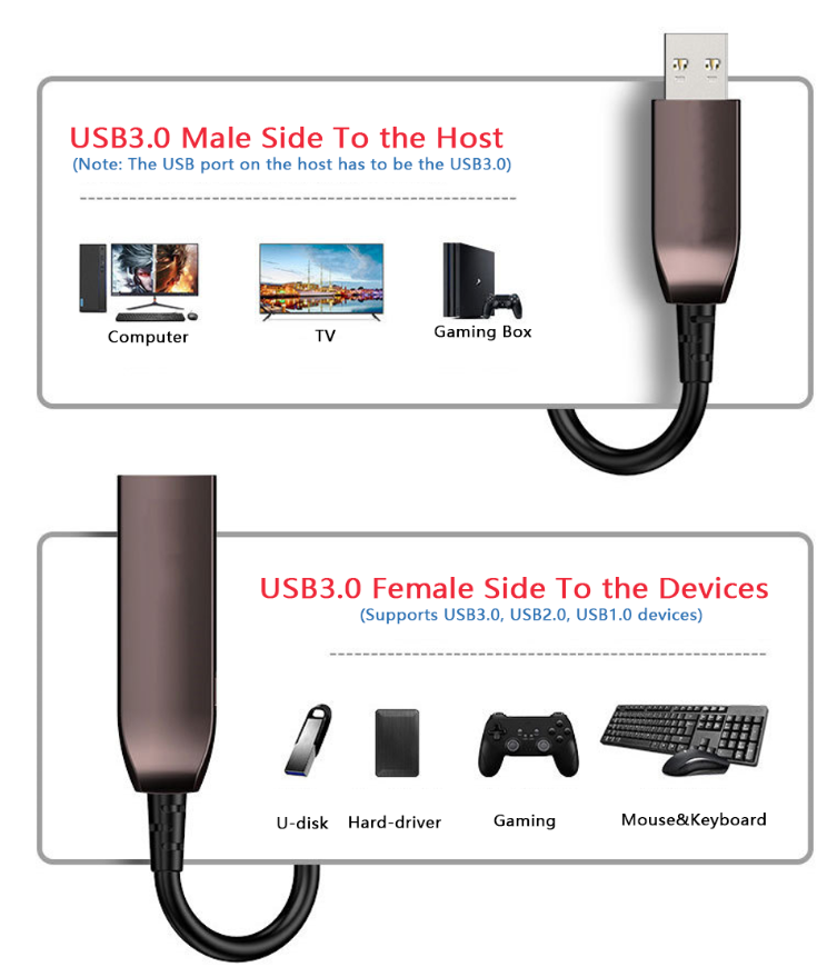 In order to solve various problems such as instability, compatibility and limited distance when traditional copper wire transmits USB3.0. This new coming Industry-leading USB3.0 (USB A Male To A Female) pure fiber optic technology cable will be helpful.