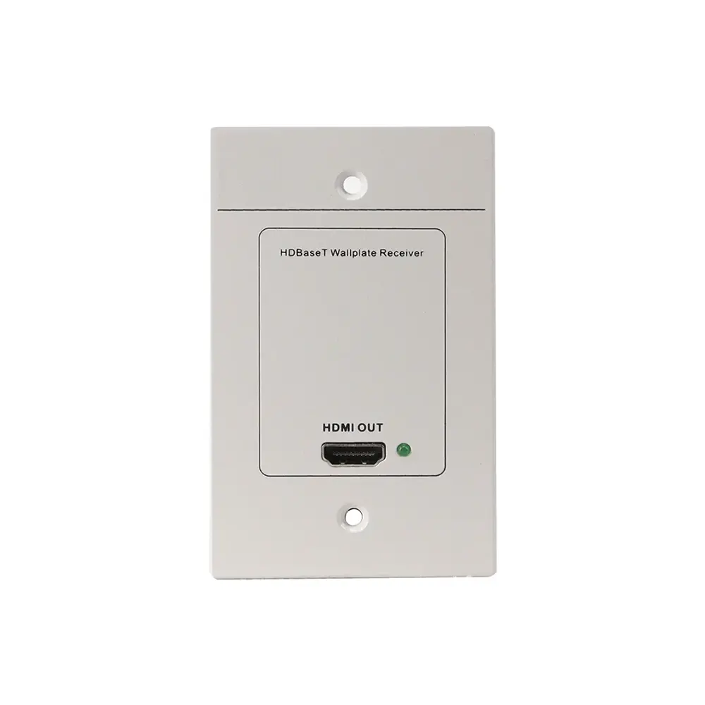 It’s an HDBaseT Wallplate Receiver which supports 1*HDMI output and LED indicators, the resolution can up to 4k@30hz, for the transmission distance it can up to 70m at 1080P60, and for 4K30Hz it can up to 35m over single Cat5e/6/7 cable. Please noted that this Wallplate Receiver doesn’t support POC function, will have to use the power adapter to power on it and also the working temperature is warm.