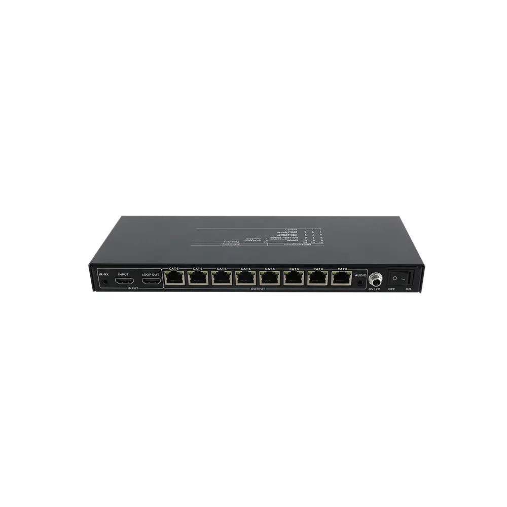 | Outputs: 8*CAT6 outputs, 3.5mm audio output |