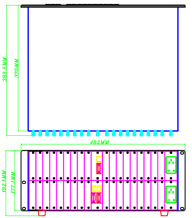 | Dimensão | 4U, 482×385×178(mm)/18,97*15,35*7,01(pol.); Embalagem: 60*38*54cm |