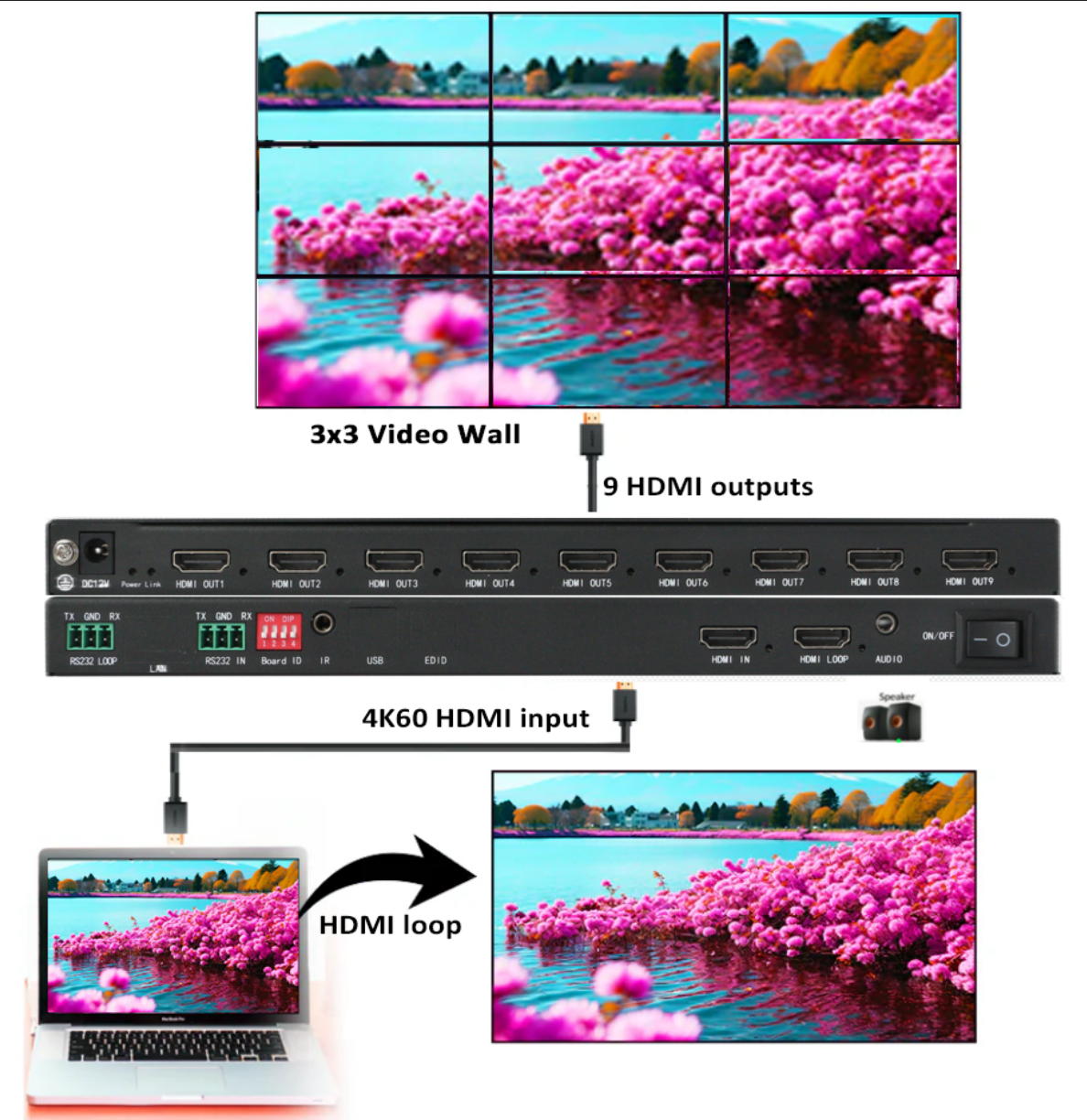 - Supports 9 HDMI with 1920*1200@60 resolution outputs