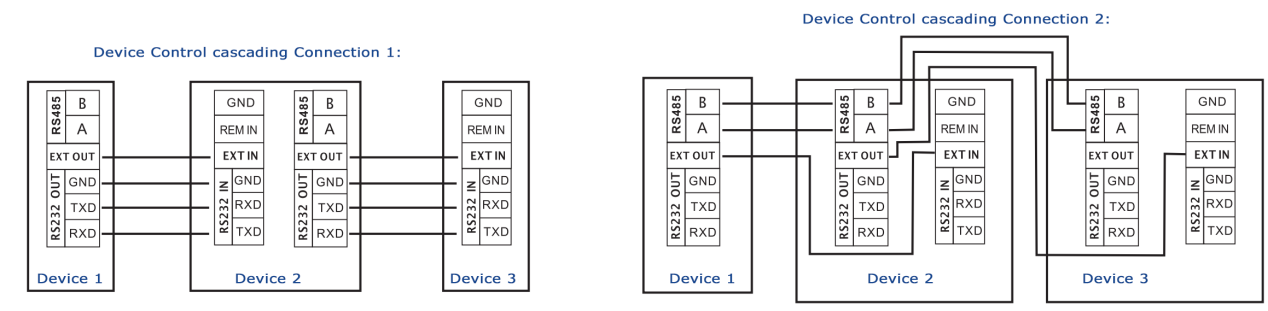 2: 6-PIN control port, PIN1-RS232 OUT RXD, PIN2-RS232 OUT RXD, PIN-3 GND, PIN4 NEXT OUT(Cascading out), PIN5 REM OUT(Control out)