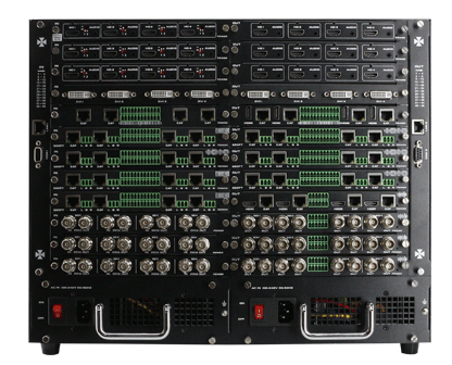 | Output | 1-card 4-port output, including DVI/HDMI/VGA/CVBS/YPbPr/SDI/ HDMIBaseT/Fiber |